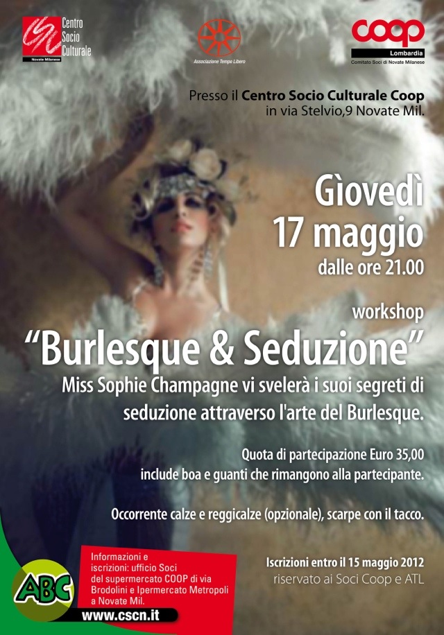 Una serata all’insegna del divertimento e dell’ironica seduzione, un workshop di due ore che vi accompagnerà nel magico mondo del burlesque per avvicinarvi a quest’arte tornata di gran moda in questi ultimi anni.