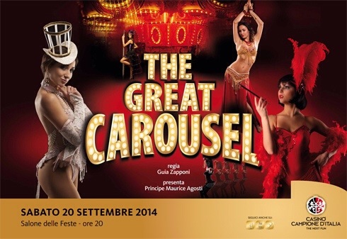 Cabaret e varietà, aria di Parigi e atmosfere orientali: è “The great carousel”, lo spettacolo che andrà in scena sabato 20 settembre nel Salone delle Feste del Casinò Campione d’Italia con un programma organizzato da Guia Zapponi, la giovane regista che si riserva il Gran finale, con Principe Maurice, presentatore della serata, di una messinscena che comprende la cena. Non per caso c’è una “Cena con burlesque”, con oltre duecento repliche dal 2010, nella carriera registica di Guia Zapponi che, dopo il diploma alla Scuola di recitazione del Teatro Stabile di Genova, ha svolto una sfaccettata attività nell’ambito dello spettacolo, in teatro (tra l’altro nel “Don Chisciotte” di Maurizio Scaparro, nel “Postino di Neruda” di Memè Perlini, in “Romeo e Giulietta” di Nicolaj Karpov) e al cinema (“Sotto una buona stella” di Carlo Verdone, e Pupi Avati: “Un ragazzo d’oro”, “Una sconfinata giovinezza”, “Il figlio più piccolo”, e in televisione “Un matrimonio”).