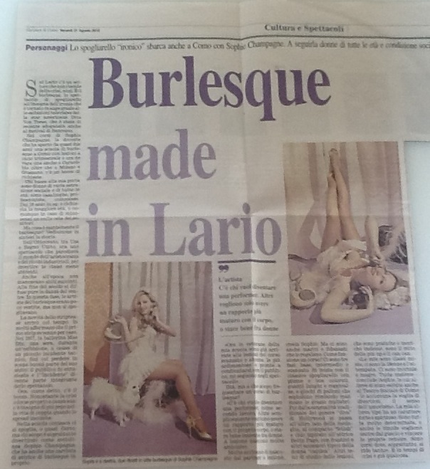 Burlesque made in Lario VENERDÌ 31 AGOSTO 2012 Personaggi – Lo spogliarello “ironico” sbarca anche a Como con Sophie Champagne. A seguirla donne di tutte le età e condizione sociale Sul Lario c’è un settore che non risente della crisi, anzi. È il burlesque, lo spettacolo di spogliarello all’insegna dell’ironia che è tornato in auge grazie alle esibizioni televisive della star americana Dita Von Teese, che è stata di recente sdoganata anche al festival di Sanremo. Nei corsi di Sophie Champagne, la docente che ha aperto da quasi due anni una scuola di burlesque a Como con lezioni a ciclo trimestrale e ora ne vara una anche a Cernobbio oltre che a Milano e Giussano , c’è un boom di richieste. Chi bussa alla sua porta sono donne di varia estrazione sociale e di tutte le età: sono casalinghe, professioniste, commesse. Dai 18 anni in su: è richiesta la maggiore età, o comunque in caso di minorenni un nulla osta dei genitori. Ma cosa è esattamente il burlesque? Vediamone in sintesi la storia. Nell’Ottocento, tra Usa e Regno Unito, era uno spettacolo che parodiava il mondo dell’aristocrazia e dei ricchi industriali, per divertire le classi meno abbienti. Anche all’epoca non mancavano abiti succinti. Alla fine del secolo si diffuse pure la danza del ventre. In questa fase, le artiste del burlesque erano poco vestite, ma non si spogliavano. La novità dello striptease arrivò col tempo. In molti affermano che il primo strip avvenne per caso. Nel 1917, la ballerina Mae Dix, una sera, durante un’esibizione, a causa di un piccolo incidente tecnico, finì col perdere in scena buona parte del suo abito: il pubblico fu entusiasta e l’“incidente” divenne parte integrante dello spettacolo. Ora, come detto, c’è il boom. Nonostante la crisi o forse proprio a causa sua: c’è bisogno di più pepe nella vita di coppia quando lo spread incombe. Nella scuola comasca ci si spoglia, o quasi. Certo, ma «lo scopo è soprattutto divertirsi» come sottolinea Sophie Champagne, che ha anche una carriera di attrice di burlesque in proprio. «Ora le veterane della mia scuola sono già arrivate alle lezioni del corso avanzato e alcune, le più ardimentose e pronte a confrontarsi con il pubblico, mi seguono negli spettacoli». Già, ma a che scopo frequentare un corso di burlesque? «C’è chi vuole diventare una performer, come secondo lavoro. Altre semplicemente vogliono avere un rapporto più maturo con il proprio corpo, o stare bene insieme fra donne. A lezione nascono molte amicizie». Molte arrivano di nascosto dal partner a lezione, rivela Sophie. Ma ci sono anche mariti e fidanzati che lo regalano. Come funziona un corso? Ci sono tre fasi: base, intermedio e avanzato. Si inizia con il classico spogliarello con piume e boa colorati, guanti lunghi e reggicalze, e giochi di palloni che esplodono rivelando man mano le grazie muliebri. Poi dalla sensualità tradizionale del genere “diva” di Hollywood si passa all’altro lato della medaglia, al comparto “fetish” e chic ispirato all’attrice Betty Page, con frustini e altri accessori tipici della donna “cattiva”. Altri temi di studio delle lezioni, che sono pratiche e teoriche insieme, sono il mito della pin up e il can can. «Le mie sono classi miste, ci sono la 18enne e l’attempata. Ci sono morbide e magre. Tutte insieme – conclude Sophie, le cui allieve si sono esibite anche al Teatro Sociale di Como – le accomuna la voglia di divertirsi, il senso dell’umorismo. La mia allieva tipo ha un carattere forte e spiritoso. Sono tutte molto determinate, e anche le timide vogliono uscire dal guscio e vincere le proprie remore. Sono corsi dove, soprattutto, si ride tanto». E in tempi di crisi è già qualcosa. Nella foto: Un ritratto in stile burlesque di Sophie Champagne